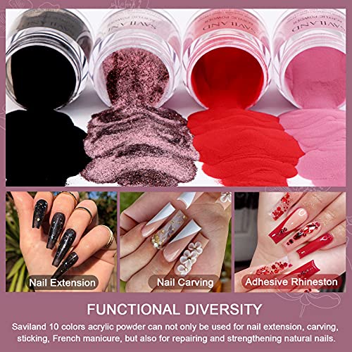 ❤【KEINE AUSHÄRTUNG ERFORDERLICH UND LANGLEBIG Das farbige Acrylpulversystem von Saviland benötigt keine Nagellampe zum Aushärten, wodurch verhindert werden kann, dass hautschädigende Haut von einer Nagellampe abgewendet wird. Acrylpuder ist nägelfreundlich und kann mehr als 28 Tage auf den Nägeln halten. Kompatibel mit allen Acrylic Liquid Monomer Systemen.