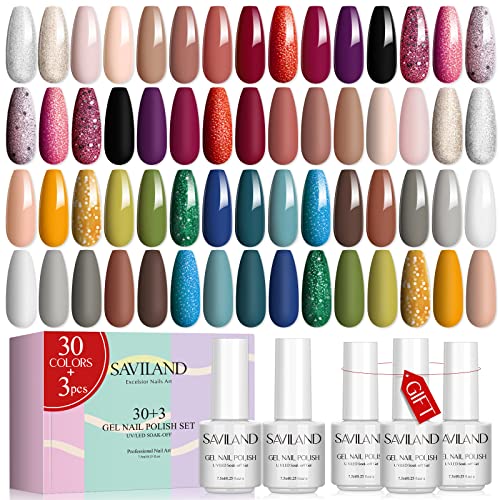 🌼【WUNDERSCHÖNES 30+3 GEL-NAGELLACK-SET】Saviland Gel-Nagellack-Set enthält 30 × 7,5 ml Gel-Nagellack in wunderschönen Farben. Wie z. B. sanftes Rosa, hochwertiges Grau, ruhiges Besoffen, edles Lila etc. Darüber hinaus sind Glitzer- und Pailletten-Gel-Nagellacke alias sehr speziell und individuell. Der glänzende und matte Decklack gibt Ihnen zwei verschiedene Maniküre-Effekte.