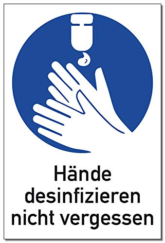 HOCHWERTIG | Hinweisschild Hände desinfizieren nicht vergessen | hochwertiges stabiles Alu Verbundmaterial Schild | B 300 x H 200 mm x T 2 mm |