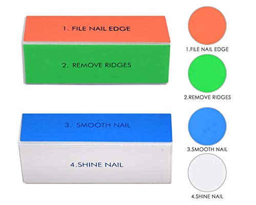 Vielseitige Nagelpolierblöcke: Enthält 4-Ausschnitt- und 7-stufige Nagelpufferblöcke, jede Seite ist nummeriert für die Verwendung der Ackerbau. Einfaches Abschleifen und Abschleifen von Kratzern und Flecken von Nageloberflächen.