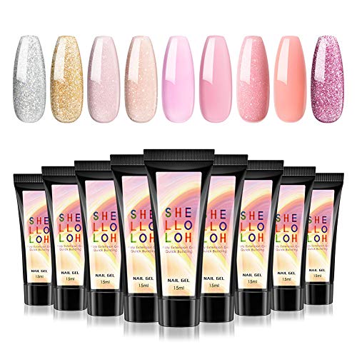 Shelloloh 9pcs Nagel Verlängerung Gel Set UV Gellack Schnell Aufbeu Gel Maniküre Set UV Nagellack Nageldesign Set