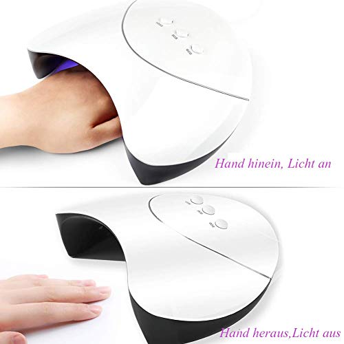 Professionelles Aushärtungsgerät (36 W) kann man die passende Zeiteinstellung (60s/90s/120s) oder Auto-Sensor benutzen