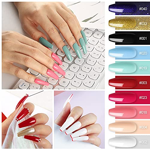 10 schöne Farbtönen in bester Nagelstudio Qualität, super Deckkraft und Festigkeit& 2-3 Woche Haltbarkeit