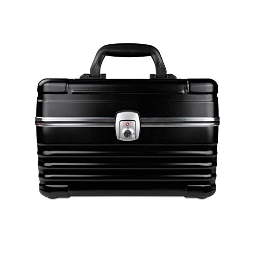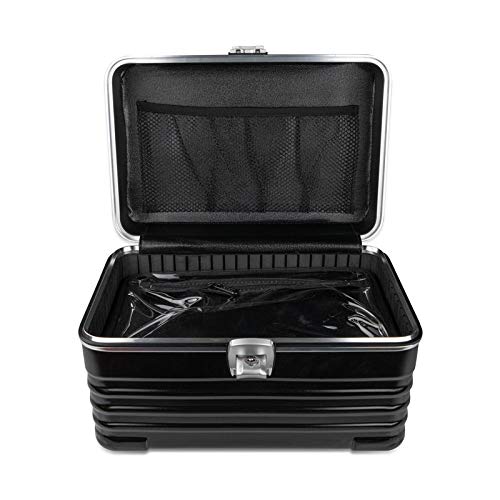 Kosmetik Koffer schwarz Immerdar o. k. organisiert Mit unserem Kosmetik-Koffer haben Sie Immerdar den Überblick: mit zwei Organisations-Systemen gehört Unordnung der Vergangenheit an. Hinterlassen Sie stets einen professionellen Eindruck: Nichts ist lästiger, als umständlich nach dem gewünschten Produkt zu durchsuchen. Dank der cleveren Aufteilung sehen Sie Ihre Produkte auf einen Blick: Der Koffer hat 6 Fächer, die ein Verrutschen des Inhalts umschiffen. So können Sie Ihre Produkte einfach sortieren und wissen sofort, wo sich was befindet. Das herausnehmbare Etui eignet sich äußerst für die Aufbewahrung von Kosmetikpinseln, Spateln, etc. Dank der Form des Etuis lassen sich die Pinsel einfach entnehmen und wiederum verstauen. Zusätzlich werden die Pinsel geschont und behalten ihre Form bei. Das Innere des Koffers ist in einem stilvollen und pflegeleichten Schwarzton gehalten. Für Ihre Sicherheit ist ein Schlüssel vorhanden. So können Sie den Koffer beenden und vor unerwünschtem Öffnen schützen. Erhältlich in edlem Schwarz und stilvollem Rot. Übersichtlich Erschütterungsfest Modisch und seriös zugleich Anpassungsfähig einsetzbar (für Kosmetiker, Friseure, Stylisten), im Institut und variabel