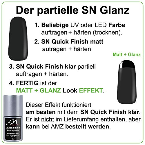 + Kombiniere mit dem „SN Quick Finish Hoch-Glanz Versiegelungsgel“ und Du kannst generell coole Effekte zaubern. –> Probiere es 🙂