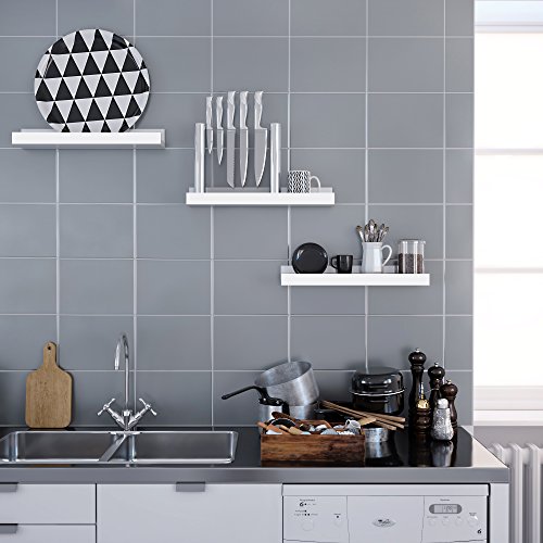 Einfache Montage: Die Regale lassen sich an den vorgebohrten Öffnungen fest unter Zuhilfenahme von der Wand verschrauben; außerdem können Sie die Schraubköpfe via der mitgelieferten weißen Aufkleber verdecken, so dass die dekorative Wirkung der Regale nicht abgeschwächt wird