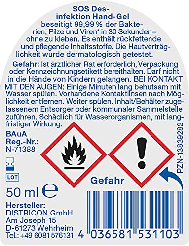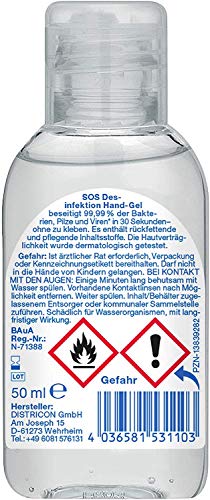 Lieferumfang – SOS Desinfektion Hand-Gel An Stelle unterwegs, zum Desinfizieren in 30 Sekunden anhand pflegenden Inhaltsstoffen. beseitigt 99,99% der Bakterien, Pilze des Weiteren Viren*, 10 x 50 ml Flasche