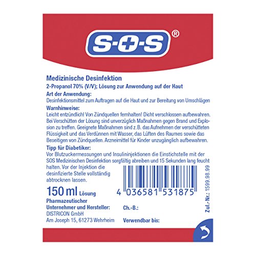 SOS Medizinische Desinfektion, Desinfektionsmittel für Hände und Haut, 3-fach wirksame Handdesinfektion gegen Viren…