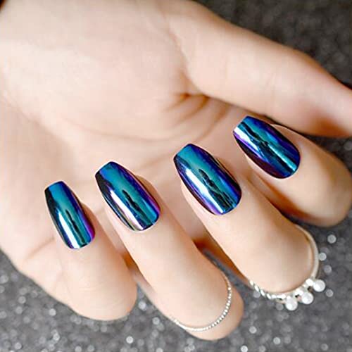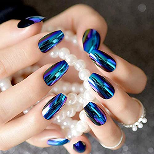 Spiegel Nägel Sarg Falsche Nägel Wunderschöner Spiegel Holographischer Chromeffekt Falsche Fingernägel Chamäleon Nägel…