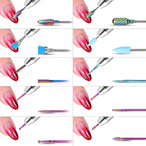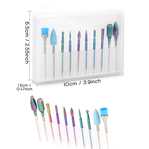💅 【Perfect Set Drill Bits】10 verschiedene Wolframcarbid-Nagelbohrer können zum Abschleifen der Nageloberfläche und sogar zum Eindringen in schmale Nagelseitenwände und Epidermis verwendet werden. Bohren und Bürsten helfen beim Reinigen und Abschleifen der Nageloberfläche und der Bohrer