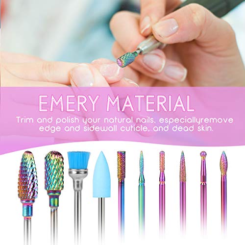 💅 【Perfect Set Drill Bits】10 verschiedene Wolframcarbid-Nagelbohrer können zum Polieren der Nageloberfläche und sogar zum Eindringen in schmale Nagelseitenwände und Epidermis verwendet werden. Bohren und Bürsten helfen beim Reinigen und Polieren der Nageloberfläche und der Bohrer