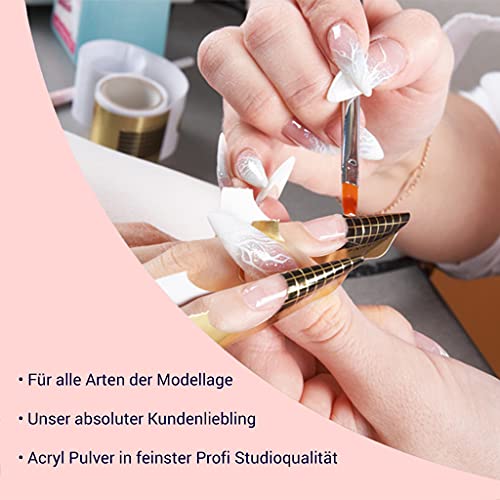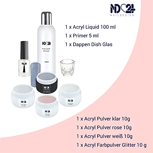ACRYLPULVER: 10 Gramm KLAR + 10 Gramm ROSE + 10 Gramm WEISS + 5 Gramm GLITTER AQUAMARINE