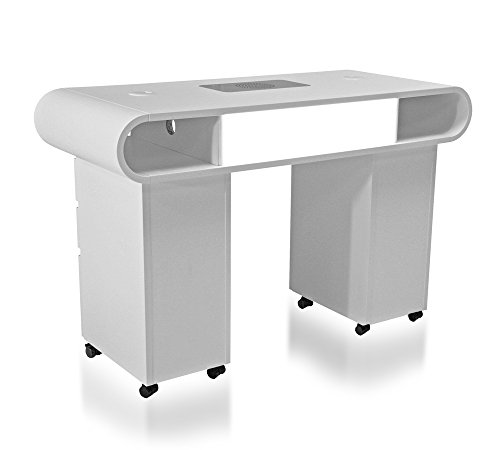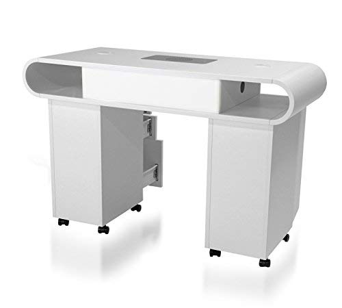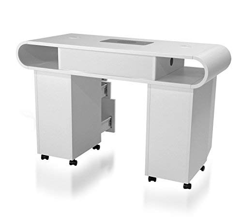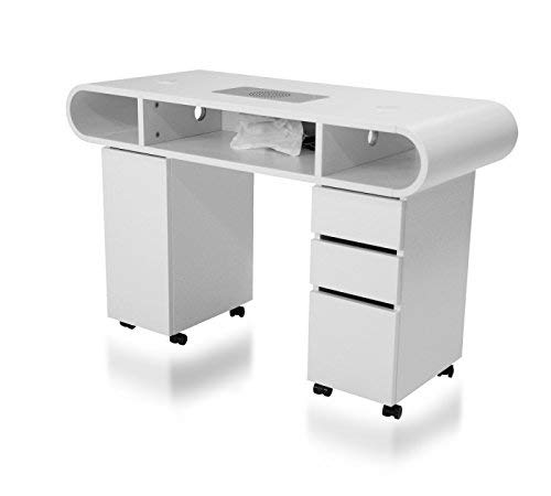 Studiotisch / Manikürtisch DR-01LÜ mit Hilfe von Beleuchtung incl. flächenbündig eingebauter Staubabsaugung Erscheinung: weiss Melaminharz beschichtete Spanplatte (Säurebeständig) Schubkasten: Auszüge Metallzargensystem gen Rollenschub Rollen: Doppellaufrolle Höhe 50mm, je Container 1xFeststeller Möbeleinbauleuchte 13 Watt Tischplatte:Front Plexiglas weiss hinterleuchtet (Breite 600mm) 1xKabelauslassdose gen der Tischplatte sonst (von Seite Nageldesigner) 1x Container mit Hilfe von 3 Stk. Schubladen 1xContainer mit Hilfe von Drehtüre des Weiteren höhenverstellbarem Einlegeboden Maße Tisch: Aussenmasse: 1160mm x 168mm x 500mm (BxHxT) Innenmaße offene Fächer anstatt Lichtgeräte: 260mm x 130mm x 500mm (BxHxT) Fach mitte: 562mm x 127mm x 356mm (BxHxT) Maße Container: Aussenmaße: 260mm x 600mm x 400mm (BxHxT, inkl. Rollen) Gesamthöhe Tisch: 765mm Unterkante Tischplatte (Anders kann eine 80iger Rolle montiert werden um eine Tischhöhe von 795mm zu entgegennehmen) Technische Unterlagen Absaugung: Netzspannung: 230V/50Hz Leistung: 18 Watt Jedweder Teile sind CE-Tüv geprüft.