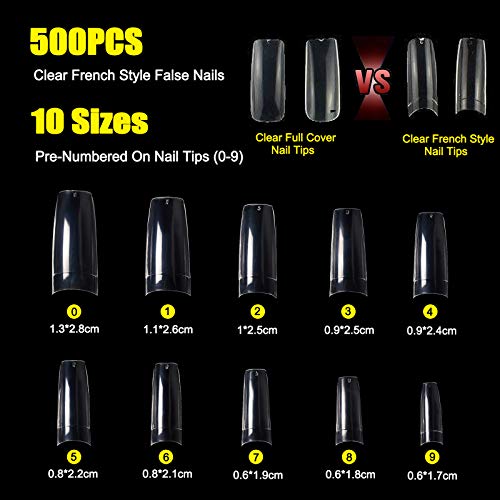 【Verschiedene Größen und perfekte Länge】: 500 Nagelstücke, erhältlich in 10 Größen, nummeriert 0-9. Dieses Ballerina-Nageldesign hat klare Farben und kann auf Ihre Länge zugeschnitten werden, Nach Maß für die Finger der meisten Menschen.