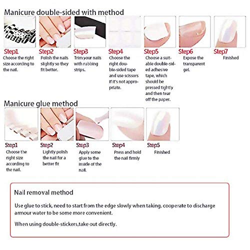 4. Praktisch: Einfach aufzutragen und mit einem Nagelaufkleber zu halten. Einfach zu mähen und in jeder gewünschten Länge und Form zu Schmirgeln. Sie eignen sich perfekt für Anfänger und Profis und eignen sich für Nagelstudios und DIY-Nagelkunst zu Hause.