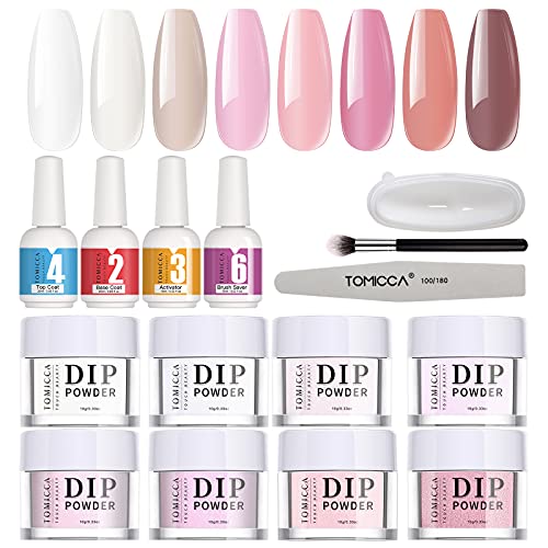 ❤【Kein Curning & Starter Kit Need: Das TOMICCA Pulver-Acryl-Nagelset benötigt keine Nagellampe zum Aushärten und enthält alles, was Sie brauchen. Einschließlich: 8 Glas Farbpulver (10 g/Glas), Basislack, Aktivator, Decklack, Pinselschoner (15 ml/Flasche), Staubpinsel, Nagelfeile und Recyclingschale. Es ist eine schnellere und einfachere Möglichkeit, Ihre Nagelkunst zu erstellen.