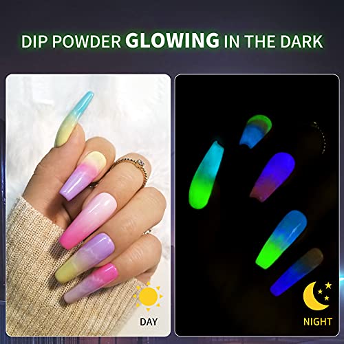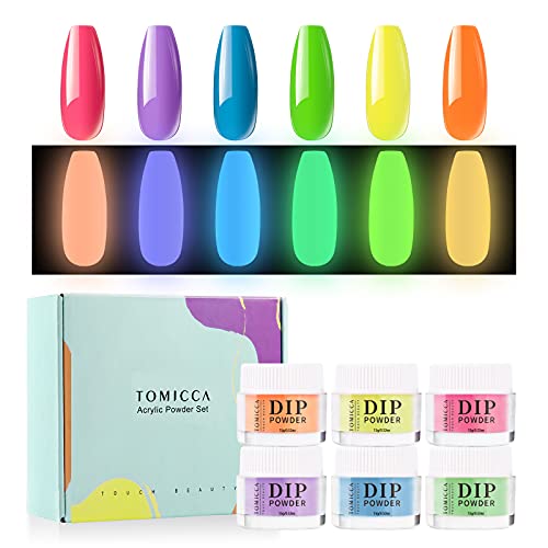 TOMICCA Fluoreszierende Dipping Powder Nails Set, 6 Farben Glow in the Dark Pigment Dip Powder, Fluoreszierende Nagel…