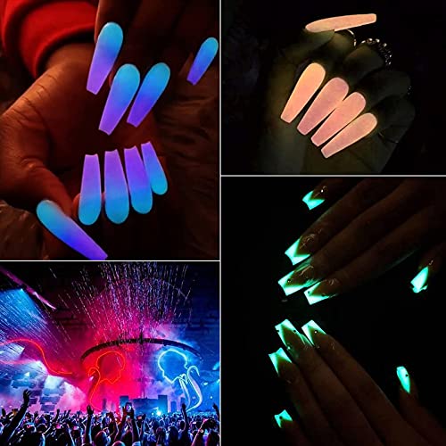 Im Dunkeln Leuchten: Es ist ein buntes Pigment, das für Farbverlaufsnägel verwendet werden kann und im Dunkeln leuchten kann. Unter normalen Tagesbedingungen ist dieses Pigment ein hell gefärbtes und sichtbares Pulver. Wenn die Nägel genügend Licht absorbieren, kann Acrylnagelpuder nachts stark leuchten. Sie können erstaunliche Leuchteffekte erzielen, um Ihre Nägel attraktiver zu machen.