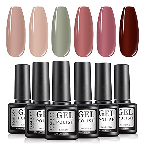 TOMICCA UV Nagellack Set, 6 Farbe Shellac Nude Grün Rot Rosa Gel Nagellack Set, Soak Off UV LED Gel Nagellack Pastell…