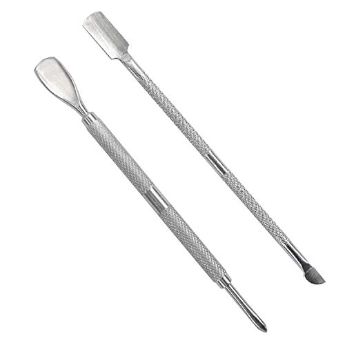 NAGELHAUTSCHIEBER; Drücken Sie Ihre Nagelhaut mit den beiden abgerundeten Behindern skeptisch zurück und ablösen Sie mit den anderen kleineren Behindern nicht mehr da hartnäckigen Reste der Nagelhaut mit einer kreisförmigen Bewegung