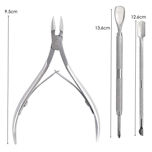 TRIXES 3-teiliges Nagelhautpflege-Set mit Nagelhautzang, Nagelknipser und Nagelhautschieber/-entferner aus Edelstahl