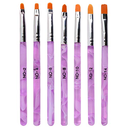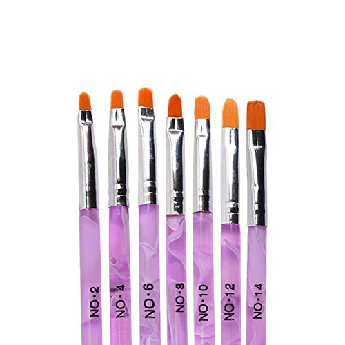 TRIXES 7-teiliges Nagelpinsel Set für UV Gel Acryl Nägel – ideal für Nagelkünstler Nail Artists Profis im Nagelstudio und für den Heimbedarf – Präzises Salonwerkzeug – Marmoriertes Lila Rosa Pink