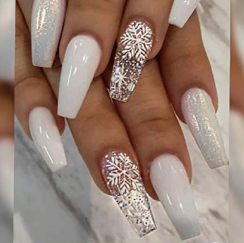 Unicra Ballerina-Kunstnägel, weiß, glänzend, zum Aufkleben, für Hochzeit, Schnee, für Frauen und Mädchen, 24 Stück