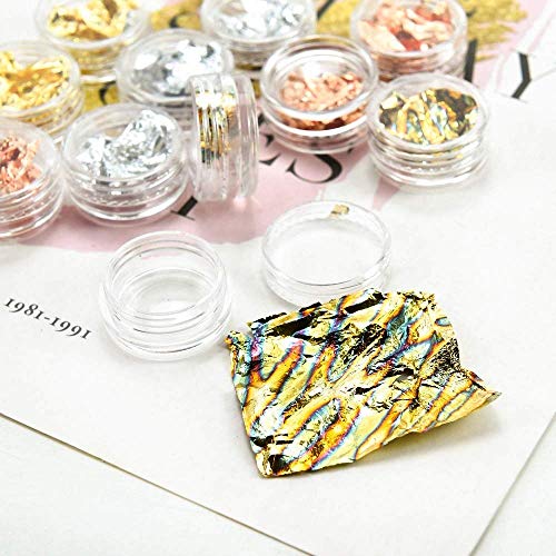 Schicke Pailletten: aus Zinnfolie, die super weich ist, leicht zu zerreißen und zu Pulver gepresst werden kann, schimmernde Oberfläche der Regenbogenkanten, schön und schick, verleiht Ihrer Nagelkunst mehr luxuriöse Gefühle