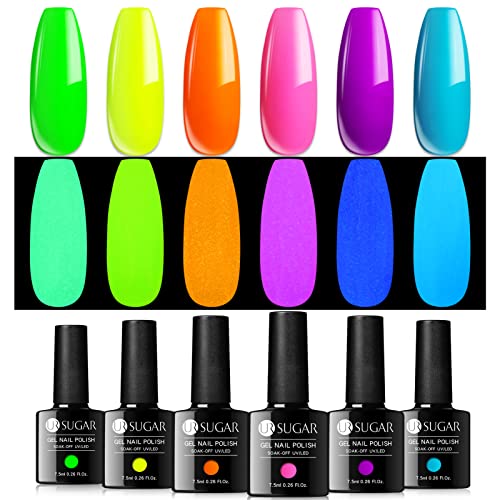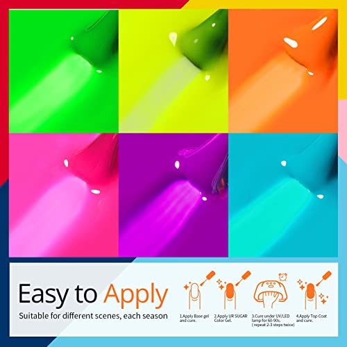 UR SUGAR U V Nagellack Neon Leuchtend Gel Nagellack Set, 6 Farben Shellac Blau Rot Gelb Gellack Gelnägel Farben Glow in…