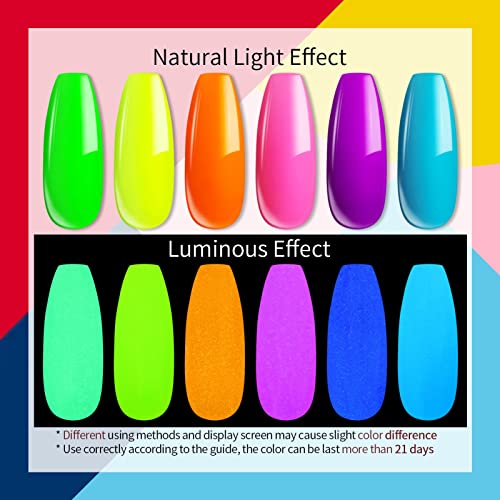 ❤Unter LED/UV-Licht 90-120 Sekunden aushärten. Basis- und Decklack erforderlich. Wenn das Gel dick oder klebrig ist, legen Sie es 1-2 Minuten in lauwarmes Wasser, nehmen Sie es aus dem Wasser und schütteln Sie es gut. Bei richtiger Anwendung hält das Neon Glow in the Dark Gel Nagellack Set mindestens 3 Wochen.