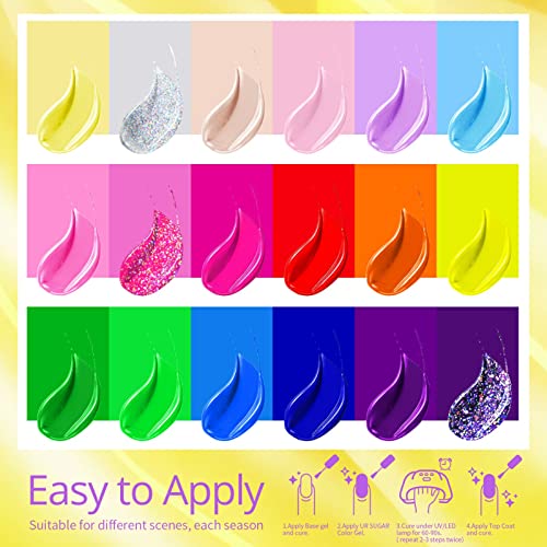 UR SUGAR UV Nagellack Set, 21 Farben Gel Nagellack Pastell Glitzer Schellack Nagellack Frühling Sommer Nagelgel mit Base…