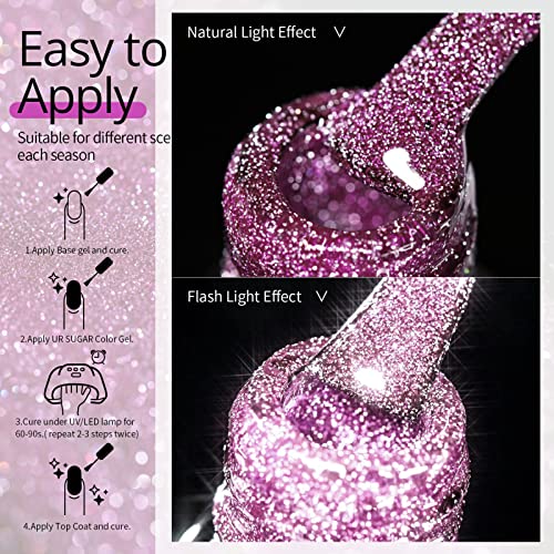 UV Nagellack Glitzer: Natural Light Normal Effect. Flashing Disco Effect. One for two, Not only suitable for daily life but also for various parties Attractive and Different effects will surprise you. Different effect depending on the light and Angle!