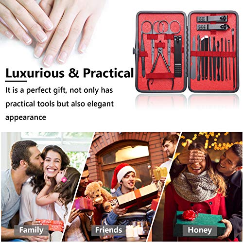 URAQT Maniküre Set, 18-teiliges Pediküre Nagelknipser Set, Edelstahl Pflege Werkzeuge Mit Schwarz PU Ledertasche…