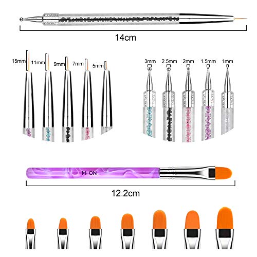 【Hohe Qualität】Die Borsten bestehen jeder synthetischen Materialien, die weicher, haltbarer und antibakterieller sind und nicht leicht abbröckeln können. Der Nageldesign-Stifte besteht jeder Kunststoff und Edelstahl, der ultrakrass und langlebig ist und lange verwendet werden kann. Der ergonomische Griff liegt angenehm in der Hand und hilft Ihnen, Ihre eigenen Nägel einfach und schnell zu basteln.