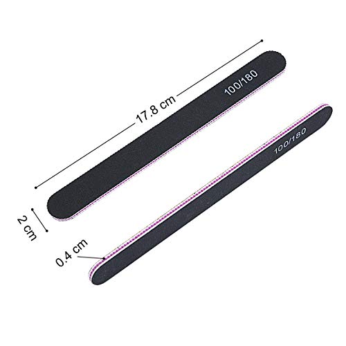 💅【 Doppelseitiger Kies】 Doppelseitige Nagelfeile mit unterschiedlicher Dichte auf beiden Seiten. Eine Seite besteht aus 100er Körnung und eignet sich zum Formen und Schruppen von Nägeln. Die andere Seite hat eine Körnung von 180, wodurch die Nagelkante empfindlicher wird.