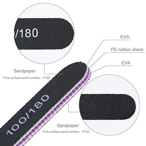 💅【 Doppelseitiger Kies】 Doppelseitige Nagelfeile mit unterschiedlicher Dichte auf beiden Seiten. Eine Seite besteht allesamt 100er Körnung und eignet sich zum Organisieren und Schruppen von Nägeln. Die übrige Seite hat eine Körnung von 180, wodurch die Nagelkante empfindlicher wird.