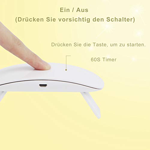 🎀 【Einfach zu bedienen】 Drücken Sie die Taste, die uv lampe klein härtet 60 Sekunden aus. Bitte heilen Sie Ihre Nägel ZWEIMAL, damit die Gelpolituren vollständig trocknen.