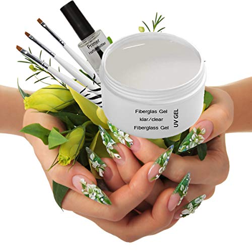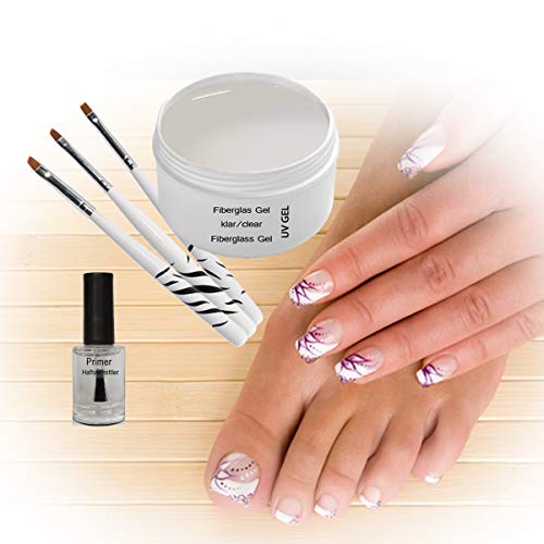 Vorteils-Set, perfekt sondern Einsteiger: PRIMER wie Haftvermittler zwischen Naturnagel und Gel, UV FIBERGLAS GEL KLAR sondern natürlichen Look und dreiteiliges ZEBRA PINSEL SET sondern Ihre Nagelmodellage.