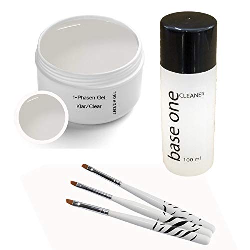 Mittelviskoses klares UV 1-Phasen Gel 5ml inklusive 3 tlg. Pinselset (Grifffarbe kann abwandeln)und 100ml Cleaner