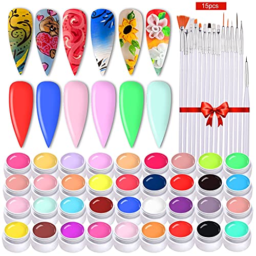 UV Gel Farbgel, 36 Farben Gel Nagellack UV Gel Nagelgel Farbgel Für Gelnäge Farben Mit 15 Nagelbürsten