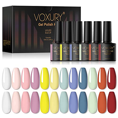 VOXURY UV Gel Nagellack Set 12 Farben Weiß Rosa Lila Gelb Blau Orange Rot UV Gellack Shellac Set Nagelgellack Soak Off…