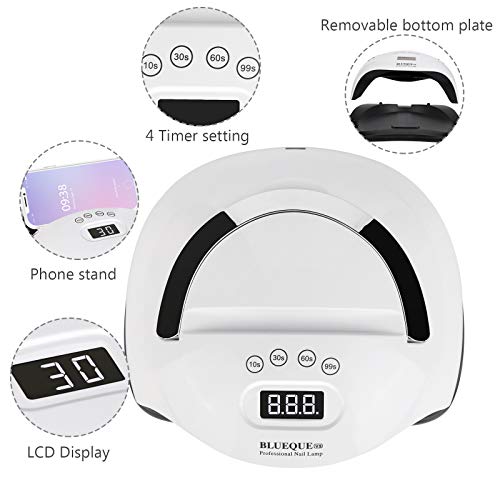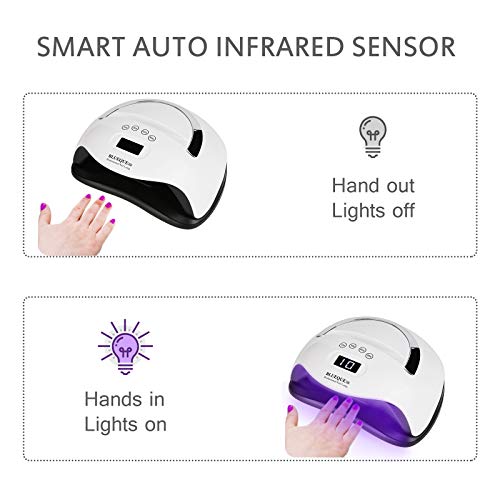 【Automatischer Sensor & LCD Bildschirm】– Ohne Drücken einer beliebigen Zeiteinstellungstaste, schaltet sich die Nagellampe automatisch durch den Auto-Sensor nach den Händen ein und sie schaltet sich aus, nachdem die Hände herausgenommen haben. Es kommt mit 10, 30, 60, 99s, um Ihre Bedürfnisse zu fertig werden. Es ist einfach zu bedienen.