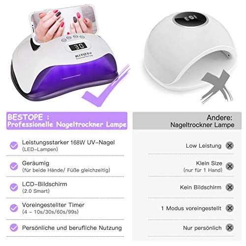 UV Lampe für Gelnägel, 168W Nageltrockner mit 36 LED Perlen, LED Nagellampe mit 10/30/60/99s Timer-Einstellungen,LCD…