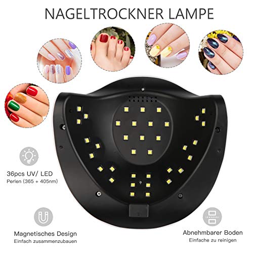 【Schnelles Trocken & Zeit und Geld Sparen】– Unsere 168W Nagellampe mit 36 langlebige UV/LED Dual-Lichtquelle Lampenperlen gleichmäßig verteilt, 180° ohne Totwinkelbeleuchtung, können in 30 Sekunden aushärten, damit Sie eine große Anzahl von Aushärtungszeiten verkürzen können.