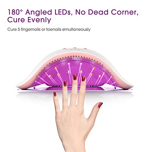 💅GENUG PLATZ FÜR 5 FINGERNÄGEL: Unser uv lampe für nägel hat einen 180-Maß-Lichtwinkel, der die gesamte Fingernagel und Zehennagel in alle Richtungen, einschließlich des Daumens, abfrottieren kann. Und es verfügt über 18 langlebige UV-LED-Perlen mit einer Lebensdauer von 50.000 Stunden und einem Dauerbetrieb von bis zu 5 Jahren. Sie müssen sich keine Gedanken über das Austauschen der Perlen machen.