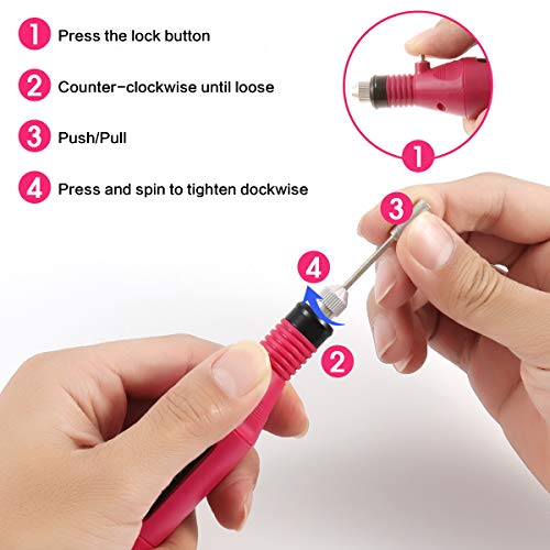 【Nagelbohrmaschine】 Das Nagelbohr-Kit enthält 6 verschiedene Metallbohrer. Jeder Bohrer hat eine andere Abguss, ein anderes Design für die Maniküre, das Separieren von Kallus, Schnitzer, Gravur, Fräsen, Schleifen, Schärfen, Sand, Polieren, Bohren und mehr. Der leistungsstarke Nail Art Drill lässt sich leicht und ohne Werkzeug durch Bits / Abschaben scheitern und ist praktisch zu bedienen.