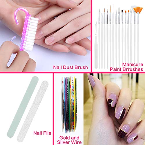 【Nagelstarter-Kit】 Dieses verbesserte Gel-Nagellack-Kit wird mit Nail Art-Zubehör und den Nageldekorations-Kits zu Hause geliefert, um alle gewünschten Ausrichten im All-in-One-Kit zu abrunden, einschließlich Gelpolitur, Nageltrockner und Nagelmaniküre-Werkzeugen. Ein Kit, um Ihre Nägel fertig zu machen.
