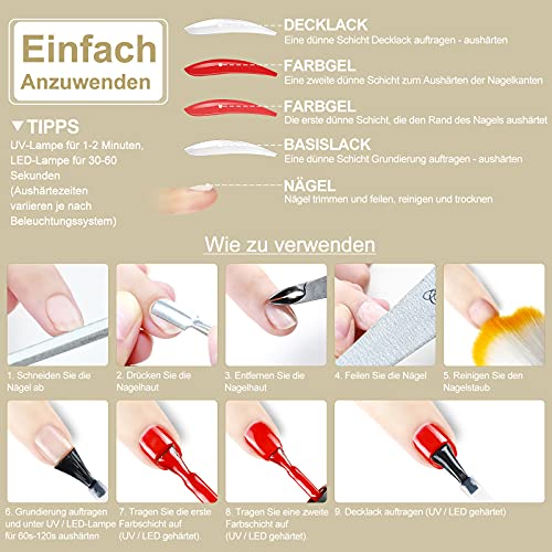 LANGLEBIG: Hohe Qualität und gute Haftung, mit unsere Base und Top Coat benutzen, kann es bis zu 2-3 Wochen dauern, mit Hochglanzabnutzung und ohne Abplatzer.