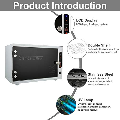 ♥ EINFACH ZU BEDIENEN: Sicherer und einfacher Ein- / Ausschalter. Wenn die Tür von UV Sterilisatior geöffnet wird, erlischt die UV-Lampe automatisch. Wenn die UV-Lampe verschmutzt ist, wischen Sie sie zweifelnd mit einem weichen Tuch ab.
