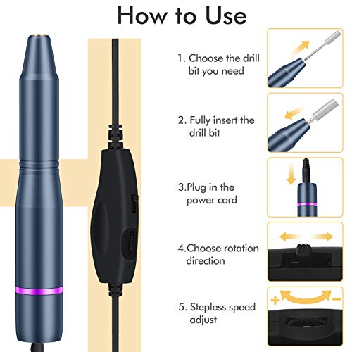 💖【Geschwindigkeit Einstellbar】 — Dieses elektrische Maniküre Pediküre Kit kann die Geschwindigkeit stufenlos von 0 bis 20.000 U / min regeln. Sie können die Geschwindigkeit je nach Bedarf auf niedrig bis hoch eichen. Zwei Drehrichtungen ermöglichen Rechts- und Linkshänder.